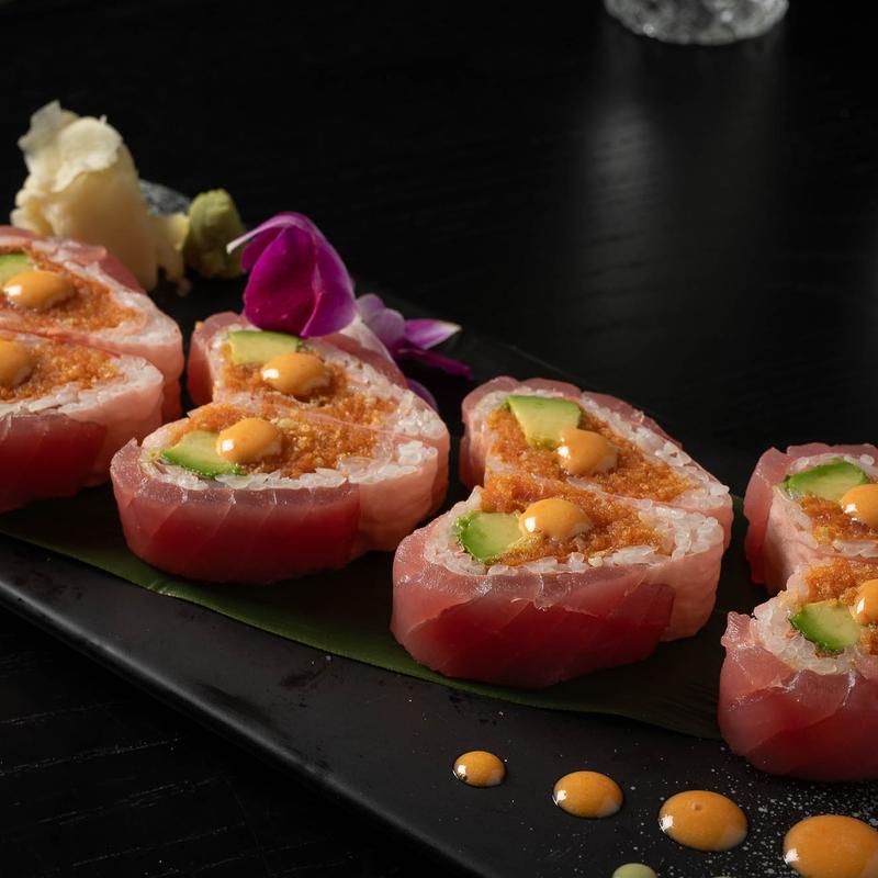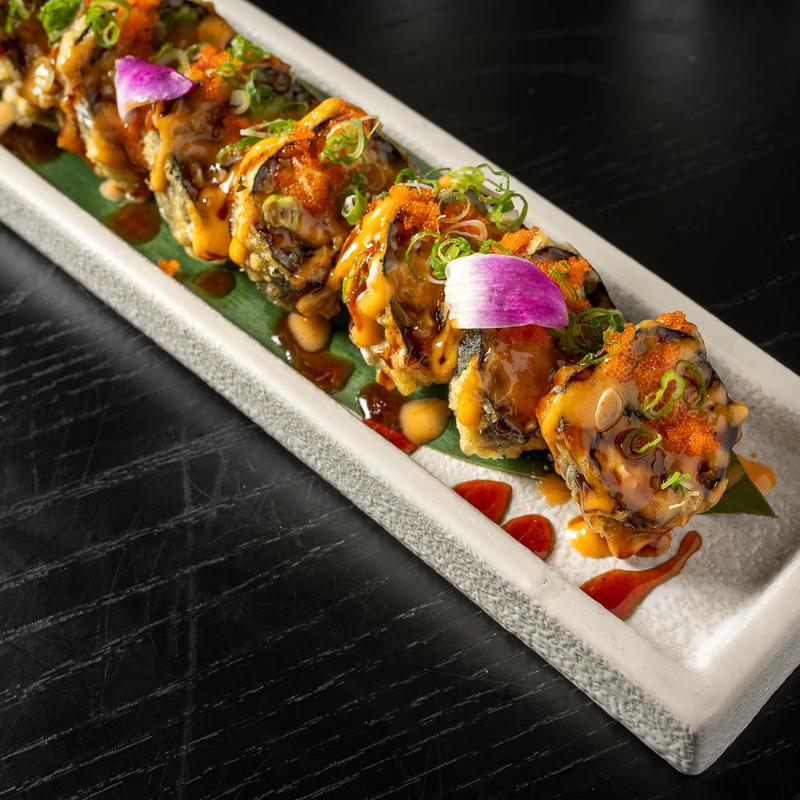 Fried jalapeno cheese and spicy tuna w.spicy sauce eel sauce