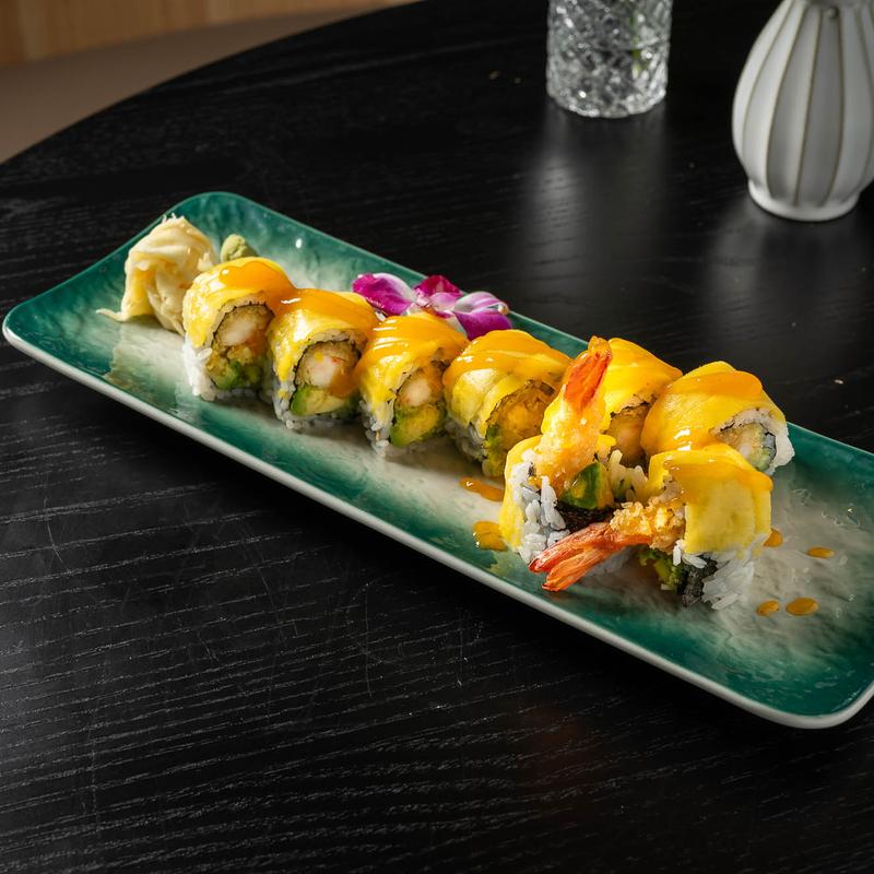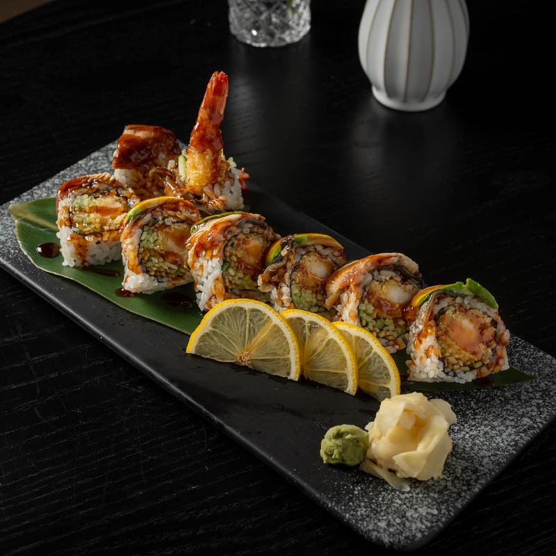 Sushi and Sashimi, shrimp tempura, steam shumai and California Roll